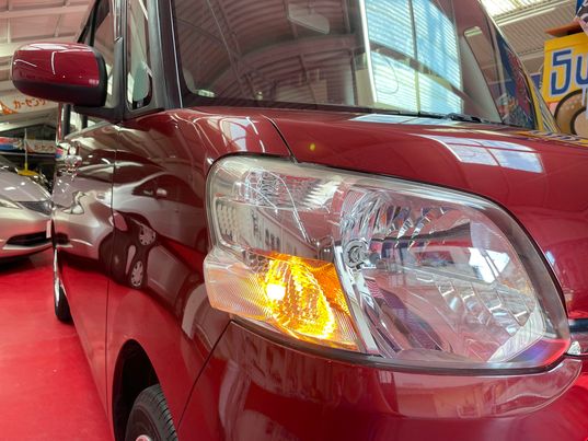 タント♡L SA♪シックなワインレッド♡スマートキー☆ETC ☆TV♪純正ナビ☆横滑り防止装置♪スマートアシスト★ 社外14インチアルミホイール★両側スライドドア♪