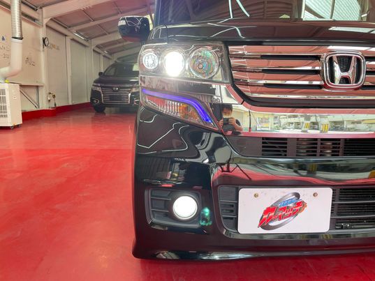 N-BOXカスタム♡G-SSパッケージ★プッシュスタート◎ 社外ナビ☆バックカメラ☻純正14インチアルミホイール ETC♬両側電動スライドドア☆横滑り防止装置N-BOX黒27