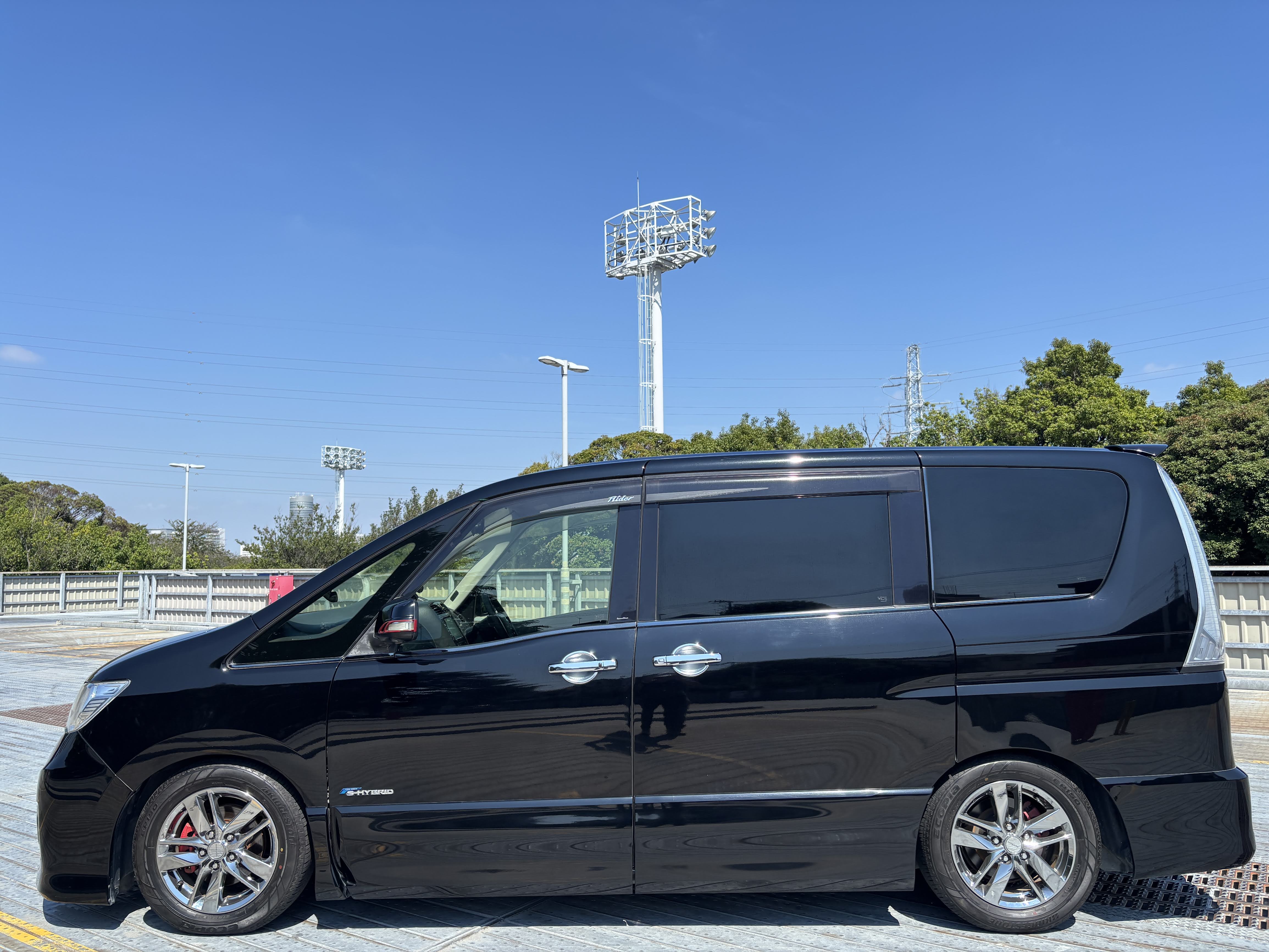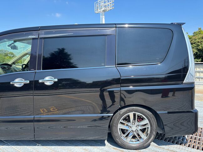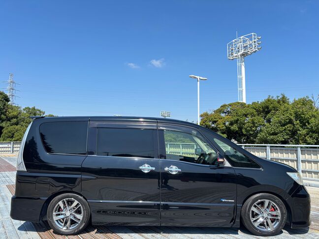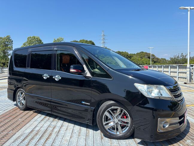 セレナ【ライダー ブラックライン S-ハイブリッド】 社外16インチAW/Bluetooth 両側パワスラ/社外8インチナビ/インナールームミラー型ドラレコ