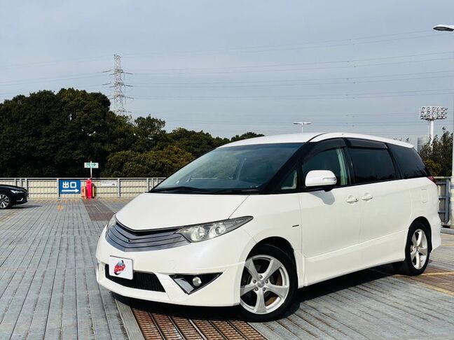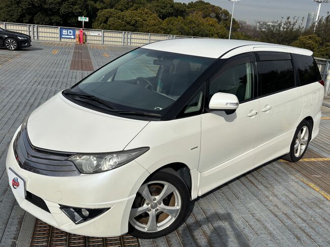 エスティマ【アエラス エアロツアラー】 オークション評価点4.5点/社外18インチ/パワスラ フリップダウンモニター/ウインカードアミラー/後席オットマン