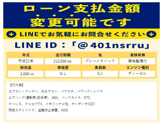 ★月額支払回数変更可【ディーゼル車】ハイエース スーパーGL ロング ディーゼルターボ 4WD ★ローン支払金額支払回数の相談お待ちしております