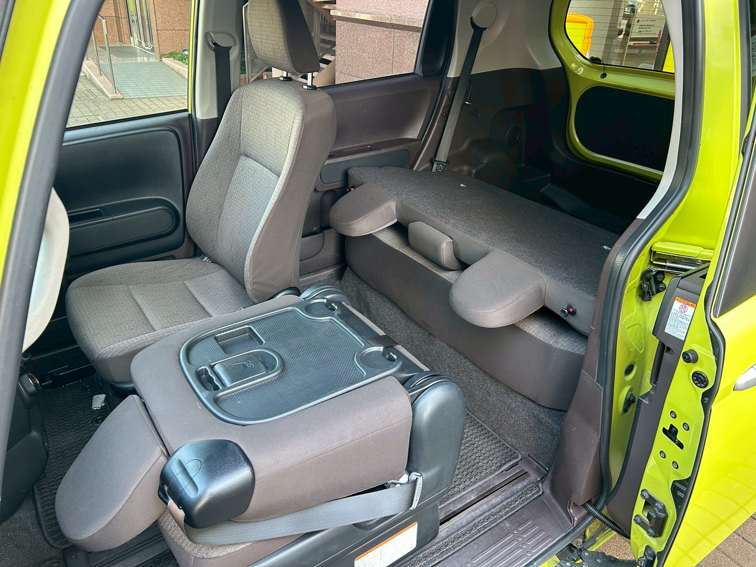 後部座席だけでなく助手席部分もフラットにすることができます ベビーカーなども積むことができる仕様です