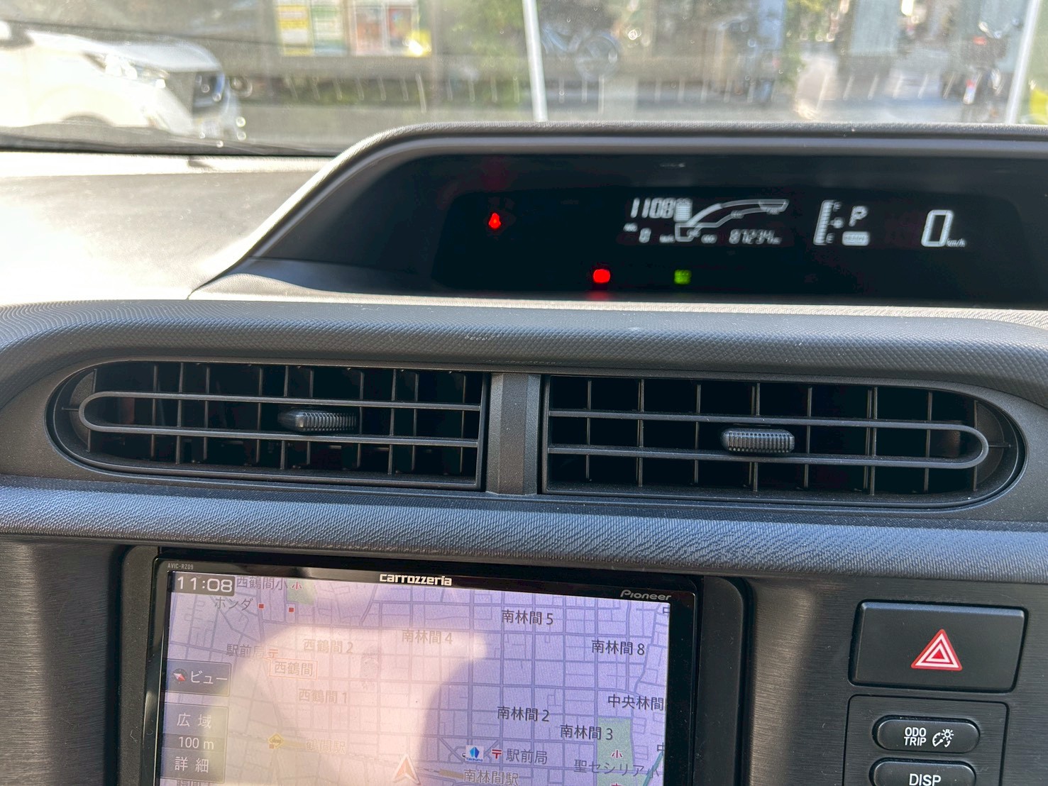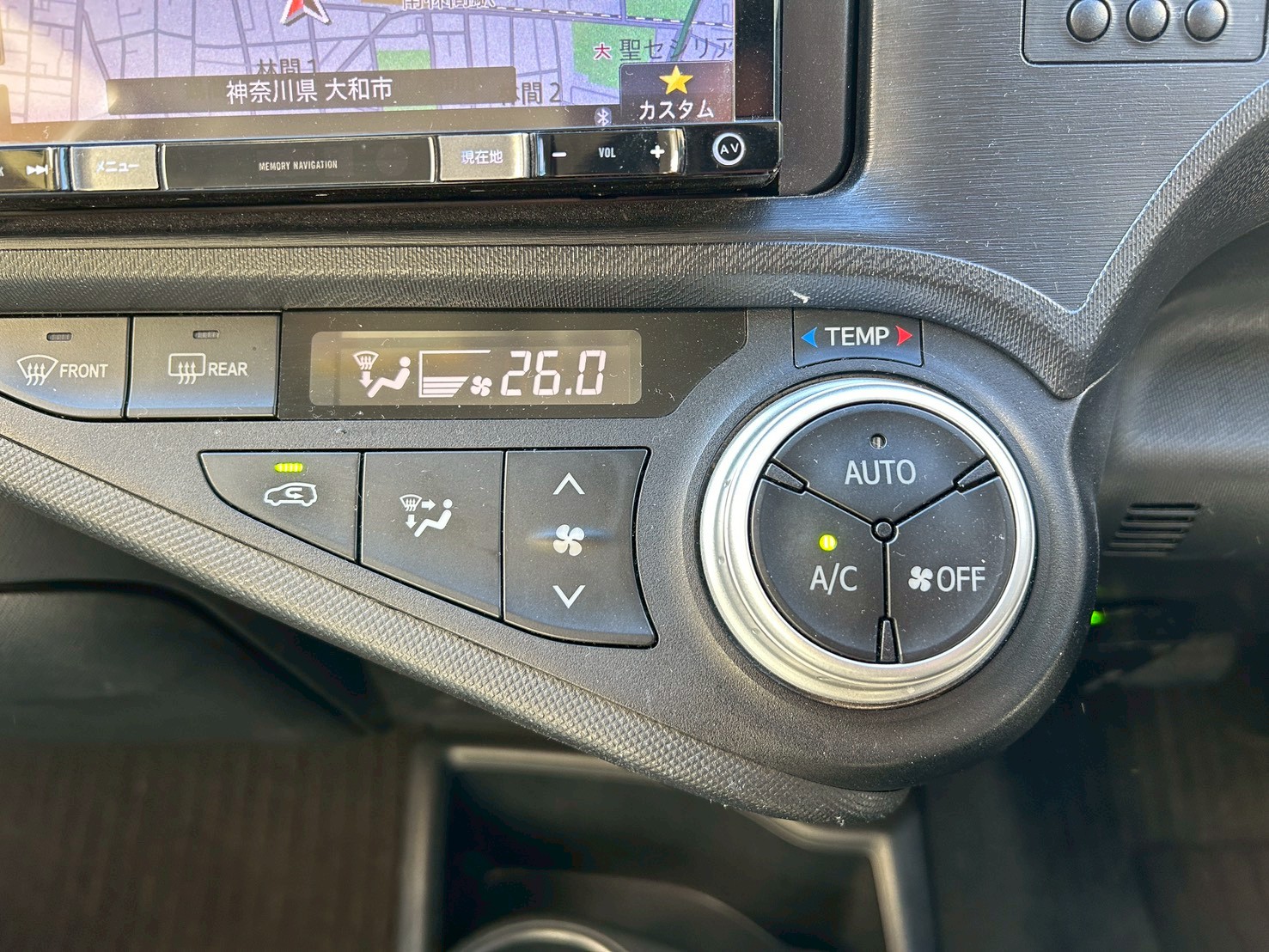視認性の高いデジタルメーターとナビゲーション。中央の吹き出し口は風量調整も容易です。【アクア】