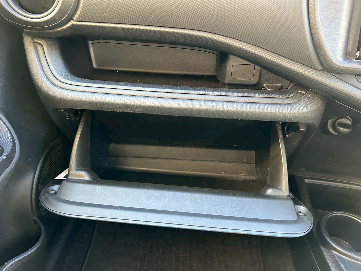 上下2段になったダッシュボード収納。開口部が広く、書類や小物の整理に便利です。【アクア】