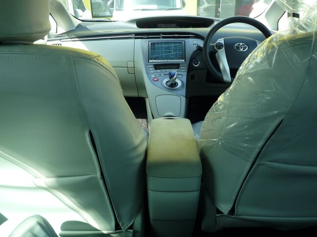 【車検整備付】トヨタ プリウス Sツーリングセレクション /純正HDD8インチナビ/レザー調シートカバー(ベージュ) /ETC/バックカメラ/スマートキー・キーレス/低燃費