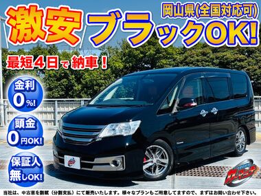 岡山県自社ローン:セレナ【ライダー ブラックライン S-ハイブリッド】入庫しました!