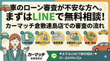 車のローン審査が不安な方へ。まずはLINEで無料相談!カーマッチ倉敷連島店での審査の流れ