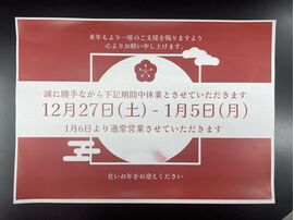 年末年始休暇のお知らせ