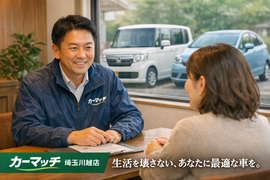 カーマッチ埼玉川越店は、川越市を中心に地域に根差し、自社ローンと高価買取という二つの柱で、お客様の豊かなカーライフを全力でサポートする店舗です。