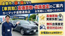 倉敷市連島町に拠点を構えるカーマッチ倉敷連島店は、中古車の販売だけでなく、「車買取」にも圧倒的な自信があります。
