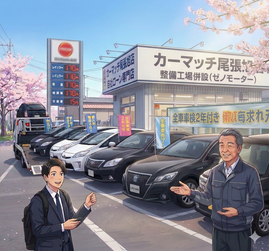 カーマッチ尾張旭店には、車の販売だけでなく、修理や板金までを自社で行える「ゼノモーター」があります。 事故現場での警察や保険会社への初期対応のアドバイスから、レッカーの手配、そして元通りに綺麗に直すための板金修理まで、私たちがお車の主治医としてワンストップで迅速にサポートいたします。