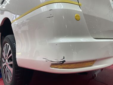 セレナの左リアバンパーのキズ