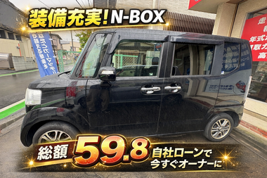 【早い者勝ち】車検R8年10月まで!装備満載N-BOXが総額59.8万円。ローン不安を解消する「神の1台」が入庫!