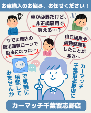 【信用回復ローン】カーマッチ千葉習志野店なら車が買える♪